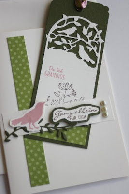 Desde que salió este conjunto de formas de corte en Stampin up (Gartenzauber + Zauberhafte Anhänger) quedé flechada! ya he hecho muchas cositas con ellos, entre éstos, la tarjeta que les muestro hoy. No tiene nada del otro mundo, pero sea como sea tiene su "pequeño efecto"